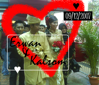 SELAMAT PENGANTIN BARU! semoga berkekalan hingga ke anak cucu akhir masa, insya'allah. and buat anak cepat-cepat, kasi Aminah jaga, LOL! meeeeesti best! =) by the way, pardon my editting skills please. it's hideous, i know. thanks to Paint lah eh. sighs. anyways, a decent picture of them with us by their side will be up soon once i've received it from Aminah 'cause the picture's with her right now, alright? p/s: just so you know, the enormous red heart's function is to focus on the newlyweds, NOT others who surrounds them. lame but still, it's worth the efforts, i guess? =/ i wonder what's it like to be a bride someday. all eyes are definitely on you, right? will there be any sense of awkwardness, perhaps? i hope not. or maybe, nervous breakdown? god, i'll sweat like crazy i tell you if it comes to that. argh! i'm practically doomed. so, on our way home, we camwhored.