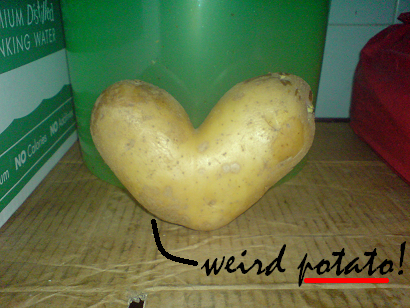 they(mainly Cavana's kitchen crew) accidentally came across this rare heart-shaped potato in one of the many sacks they bought for the week, 2 days ago. i find it very interesting that i just had to take a picture of it. cool, aye? and speaking of hearts/loves etc., i got to know that on the day of our break-up, that is on the 17th, Yong Zhang and Stella(my close Cavana-ians) on the other hand, finally got together after months of admiring each other, though at all denial about it. oh, come on you guys! wow, one relationship's taken down while another was born on that very same day. funny but, it amazes me, really. anyways, stay strong and do keep the relationship as healthy as always. it's vital, trust me. however, my manager and supervisor, both Sammy and Annie respectively, isn't that happy with the expected news. they're sort of angry with them 'cause they play too much ever since, so i've heard. not that it really matters to me but, they acted pretty much the same towards me and Azri back then so, it's not something new afterall. typical manager-staffs issues i supposed. sighs. i shall try not to think too much about it. and hey, not to brag here but an anonymous complimented on my 'excellent' services towards him/her to the higher authorities of Cavana via e-mail and they're undeniably very impressed. it's funny, really. i was just trying to do the right thing. and perhaps the littlest thing that i did then gave such a great impact on him/her. nevertheless, i thank you so much, Mr/Ms Unknown. you make me feel appreciated, without even knowing about it. ♥ not to forget, someone's already hinting on me. like goodness, i'm not even over my break-up yet. it's superbly irritating. whenever you passed by Cavana, you'd smile and throw those cheap lines on me that'll never work. -laughing out loud- though older and good-looking, he's one of Sun Plaza's cleaner. yes, it's true. oh boy, try your VERY best to capture my heart, okay? peace. i can't believe my parents would actually care to help me revamp my bedroom today, and it's even without my presence. it's supposed to be a surprise, you see. sweet, aren't they? awwwww, i am so touched! i know i should take a picture of it but i am simply too lazy for that. oh, i am so in love with my bedroom right now. thanks umi and baba! i love you. Asian Idol's indeed very unexpected but i love the winner, 'cause it might sound so lame but, he really reminds me of someone that i really, truly care about. oh, bother. p/s: Guy Sebastian's voice makes me melt. it's sexy, well to me at least. -grin- goodnight, loves. Labels: i still care |