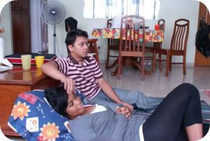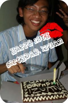 hereby, may i present to you the long-due pictures(not many, though) of our latest Pot-Luck gathering at Irfan's. but, beforehand; dah besar anak mak, iye... :] i hope you have had a great time then despite being wrestled by a handsome before you could actually blow your candles for some reason, or another, lol. may your everyday's showered with only good things in life not, otherwise. with much love, happy 19th once again. ♥ for the first and, the last picture, it's actually our attempt to try to make it look like that of F.R.I.E.N.D.S(you know, living together kind of situation etc). one word; cool. but, there's just too many of us. i'm not sure if cohabitation, not sexual-wise please, is even legal in Singapore. or, is it? :/ fyi, i'm in the midst of such a dilemma right now; between being a good, diligent daughter who stays at home for the day or, an irreplaceable girlfriend who wants to spend her very last moments with her boyfriend to make up for the next two weeks of his absence, like she should. but, Azri's going away in a day's time. there shouldn't be any doubt at all. :'[ i am so not ready for this. Labels: azri, feelings, pot-luck pictures |