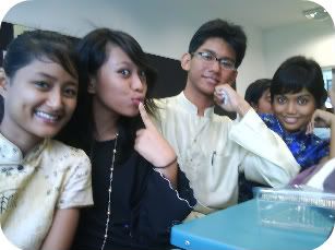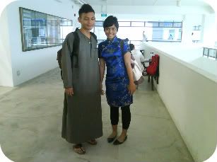 finally, i could spare at least some time to actually care for an update. many things had happened undeniably for the past week(s) or so but unfortunately, time just keeps running out. my schedule's rather tight with tons of homeworks, projects and such piling up... believeeeee me, it'll never stop. furthermore, end of year promos is drawing very near. the pressure is indeed overwhelming and, i'm ultimately shagged prior to that. oh yes, i am. but, i've got to stop whining and function more instead. this is reality for goodness sake, Azimah; face it! urgh, irritants. :'[ MONDAY, 21 JULY 2008; RACIAL HARMONY DAY oh, all the pretty people in school then. :]