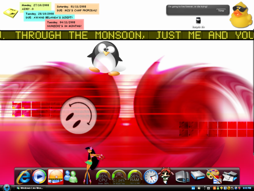 for what it's worth; beyond the world, to the end of time. ♥ way overdue Hari Raya Aidilfitri '08(specifically: 18/10/2008)'s pictures featuring my all-time favourite folks whom i love truckloads, out there. enjoy...; i realised that something is very wrong with my eyes but, heck. it has always and will forever be a very big deal/issue to me anyways. :S on a further random note however, i seriously mean it when i say i love these people to the deepest core for they're indeed my best of friends, ever. well, why not? tak cerewet, tak banyak songeh, tak dengki-mendengki, forever fun and hyped up bunch of hooligans resulting in a pretty much unbeatable camaraderie among us all. we merely just go with the flow and, that's the way FRIENDS should be. believeeeee me, there's more to this actually but, i decided to pick and, choose the best out of it all. furthermore, photobucket sucks big time. period. here's 08A4 and, 08A4's only, may i emphasise on this, Hari Raya Aidilfitri '08(specifically: 19/10/2008) pictures. ![]() ![]() there's more supposedly but i am just too lazy to upload everything. :[ i love each and, every single one of them(especially my usual cliques; you know who you are :]) except for 1 latest news thus far? :/ well, i'm promoted to year 2(yay, me!) as expected by many. however so, should you ever think that i am all satisfied with my results, i strongly suggest you to think again. it's atrocious, in my opinion. sure 1A, 2B's and 2D's did help me secure number 26 out of my whole cohort but, is that totally worth it? i still have a long, long way to go but, the saddest thing is that nobody and, i meant nobody understands just how much devastating it is for me to receive such results. they seriously thought that i am already THAT good to be complacent enough like, who are you actually kidding? with their 'whatever' reactions and, opinions towards me whenever i confessed about how i really, truly felt inside then is like as if my results weren't depressing enough for me. thanks my 'friends', thank you so much for the listening ear eh. -.-" grow up, grow up, grow up! ~!@#$%^&*() thank god, computer exists. ![]() my desktop has the ability to cheer me up whenever i feel down. :] oh yes... HAPPY DEEPAVALI TO ALL OF MY INDIAN FRIENDS! celebration at Yokesh's house yesterday 'til past midnight with the usuals was yet another awesome experience for me. i guess we have had a tad too much fun to the extent that the thought of snapping at least a couple of pictures for memories's sake just slipped off all our minds. such a waste that was, aye? :] and lately, i couldn't even be bothered to drag myself to school(alike today). why oh, why? i'm just worried about the holiday assignments, that's all. :[ p/s: i love my sayang too much to let it all go and, i am enjoying every single bits and, pieces of my life. ♥ Labels: azri, desktop, friends issues, raya updates, results |